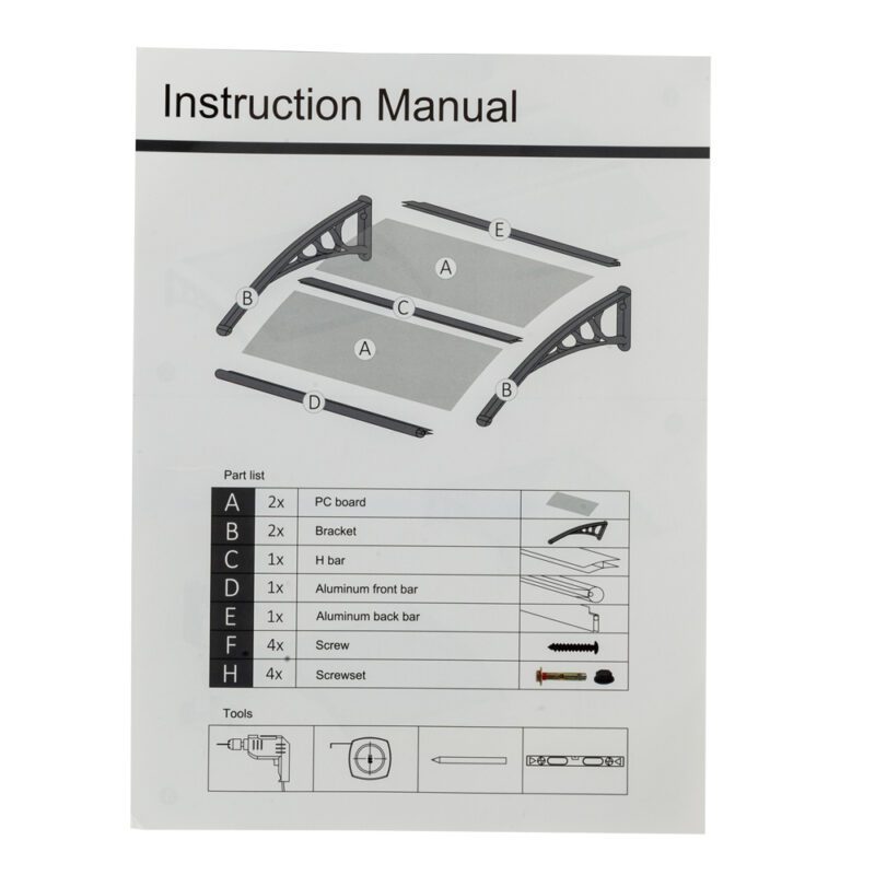 Introduction: Create a mini shelter at your door or window to resist rain and sun with the HT-100 100x80cm Household Rain Cover Eaves Canopy. Made from durable ABS and polycarbonate materials, this canopy features an aluminum bracket for strong support, forming a protective shield. Easy to install and remove, it also adds decorative appeal to your home.