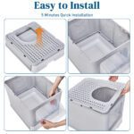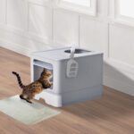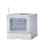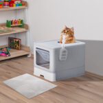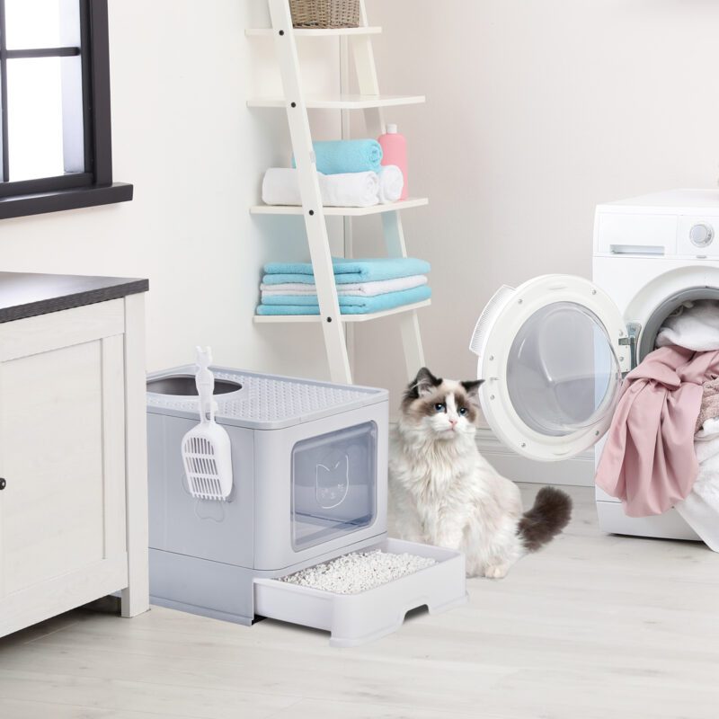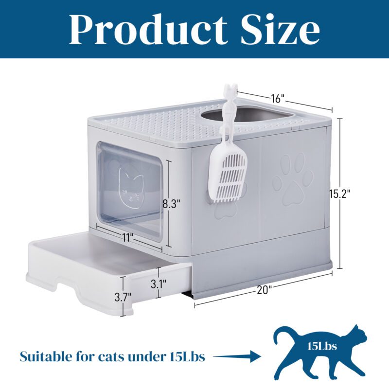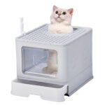 Large Enclosed Cat Litter Box with Lid, Slide-Out Tray & Scoop – Front Entry Top Exit – Gray