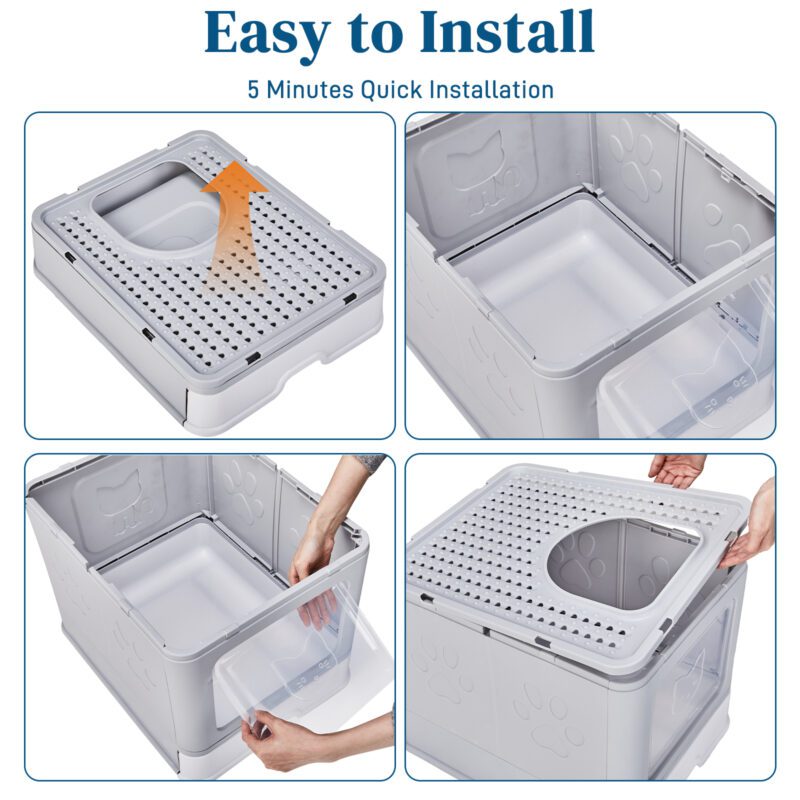 1. One-Way Access: Cats enter through the front and exit via the top, with a lid that catches excess litter.