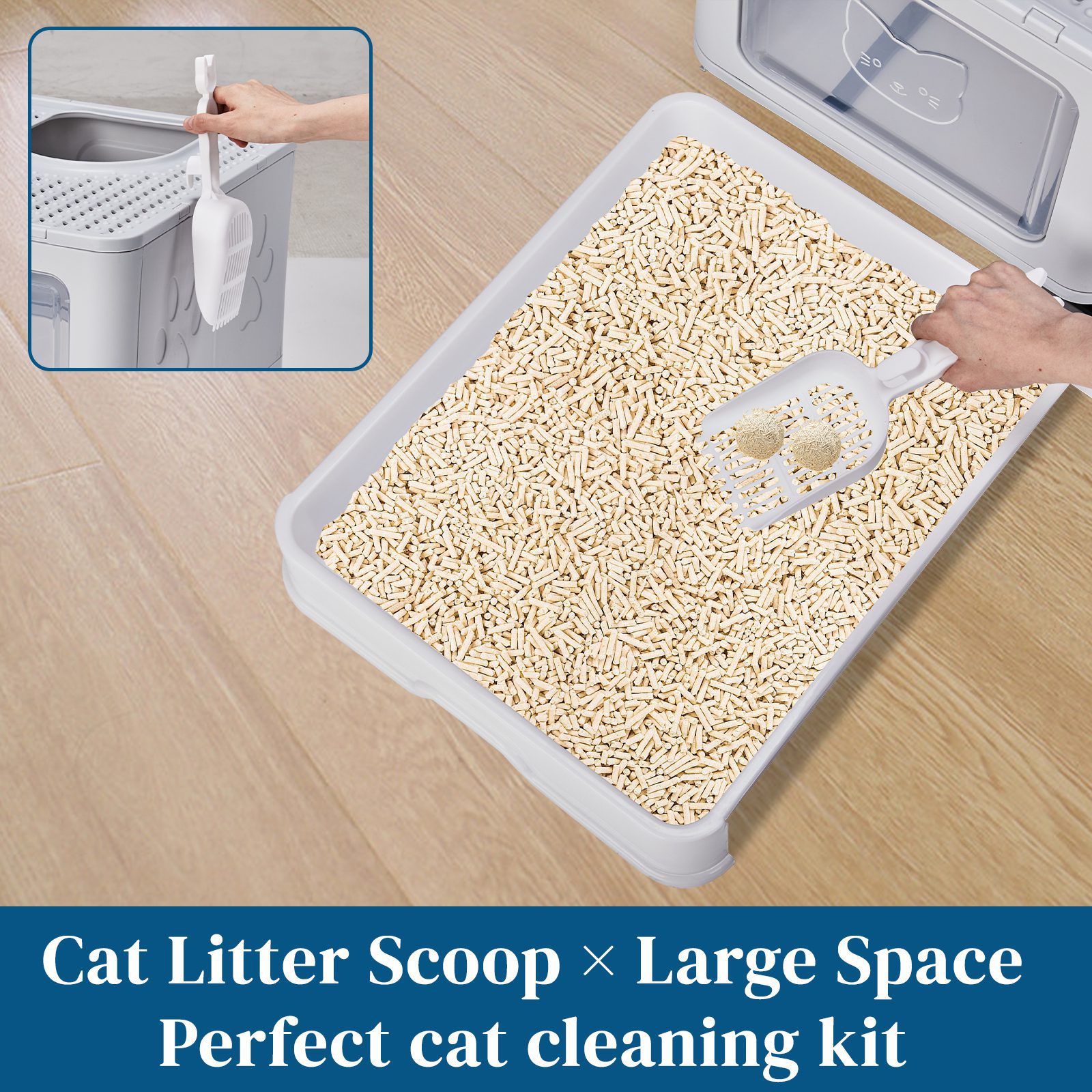 5. Convenient Scoop: Includes hanging litter scoop with rounded edges for safety.