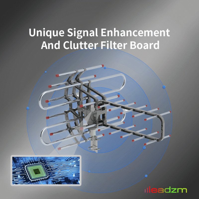 The Leadzm TA-851B Dual Band Antenna features 350° rotation for optimal signal reception across 45-860MHz frequencies with 22-28dB gain. Constructed from durable plastic and aluminum, this lightweight, compact antenna offers easy operation. Its environmentally friendly design ensures low power consumption.