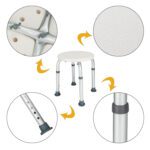 This aluminium alloy bath chair provides safety and comfort in bathrooms. Featuring adjustable height and a sturdy design, it includes anti-skid rubber feet and tool-free assembly. Certified by CE and FDA.