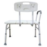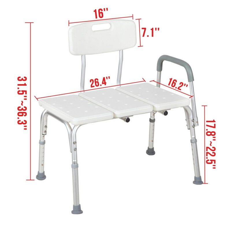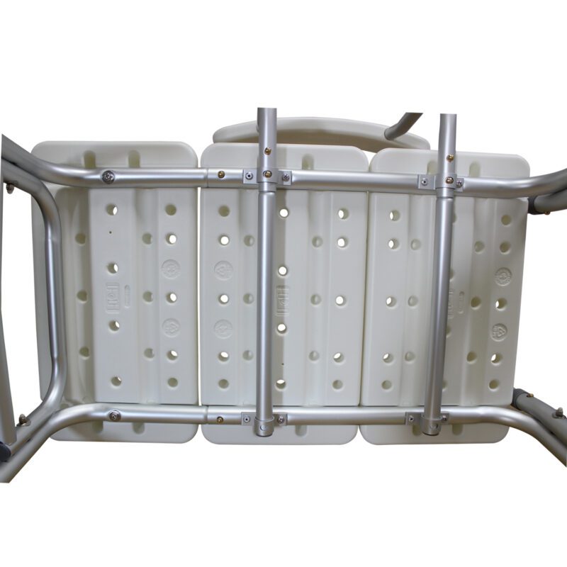 This aluminium alloy bath chair provides safety and comfort in shower or tub environments. Constructed from durable plastic, rubber, and aluminium alloy, it features a lightweight design with 10-level height adjustment. The chair includes anti-skid, anti-rust foot mats and requires no tools for installation. Certified by CE and FDA, it supports up to 150 kg (330 lbs) with 1.35 mm thick legs.