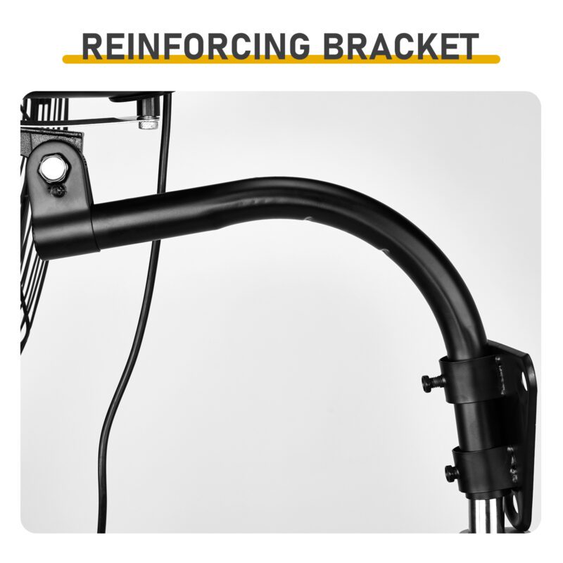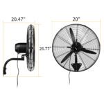 The MFJ-EW50 20-inch Industrial Wall Fan features wide-angle oscillation for effective air circulation. With a maximum airflow of 4963 CFM, this fan helps maintain comfortable environments. Its 100% BLDC copper motor delivers high efficiency and reduced energy loss, ensuring reliable performance in high-temperature or unstable voltage conditions. The sturdy all-metal construction and resilient aluminum blades provide durability for heavy-duty use in gyms, commercial spaces, garages, workshops, residences, warehouses, patios, greenhouses, resorts, loading docks, and basements.