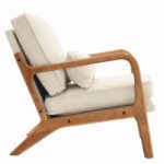 Oak Upholstered Single Lounge Chair with Armrest Off-White