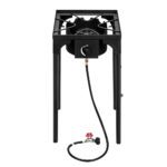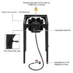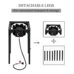 The ZOKOP portable camp stove features a durable cast iron burner delivering 75,000 BTU with adjustable flame control. Its removable legs and universal pot bracket make it ideal for camping, tailgating, home brewing, and outdoor cooking. Includes CSA-certified 0-20 psi regulator and 1.2m leather tube.