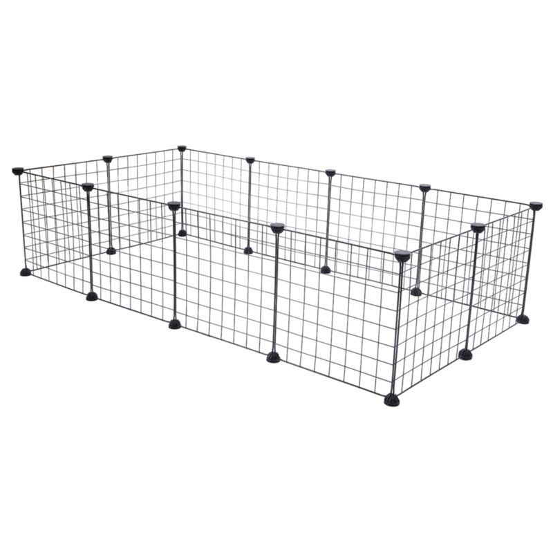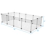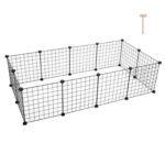 This portable metal pet playpen provides a secure indoor/outdoor enclosure for small animals like guinea pigs and rabbits. Easy to assemble with included instructions, mallet, and plastic connectors, it features an expandable design for customizable layouts. The open wire structure allows clear visibility from all angles while durable metal panels ensure stability. Suitable for hedgehogs, hamsters, and other small pets.