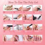 Complete poly gel nail kit includes 6 colored poly extension gels, base/top coat, 100 dual forms, slip solution, nail file, brush pen, UV LED lamp, and instructions. Designed for beginners, this starter kit enables easy at-home nail sculpting. The gel formula resists chipping and lifting, suitable for flat or thin nails. Features 6 versatile colors and a compact, foldable 12-bead UV lamp for efficient curing and travel. A pea-sized amount per nail provides approximately 10 applications, offering salon-quality results while saving time and money.