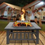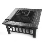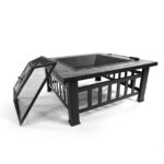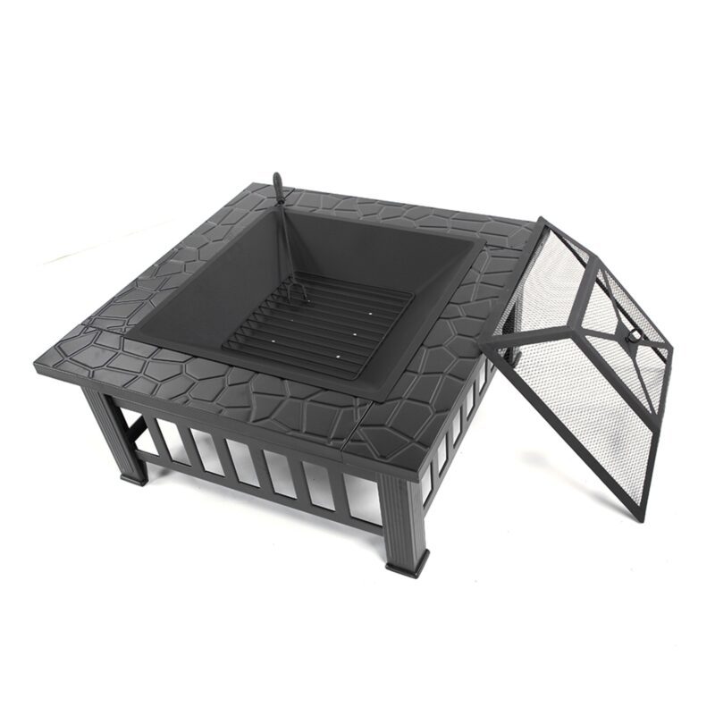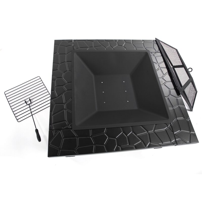 Portable Outdoor Square Metal Fire Pit with Accessories, Black