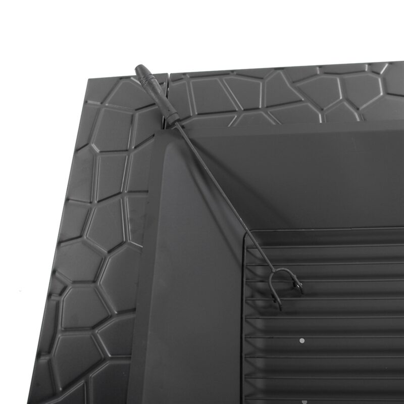 This portable outdoor square fire pit features a heavy-duty iron mesh construction and stable frame design. The included mesh screen lid prevents embers from blowing, while the poker tool allows safe fire management. Ideal for gardens or courtyards, it provides warmth during chilly weather with durable metal construction and compact dimensions for easy setup.