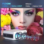 FUDONI Native 1080P WiFi Bluetooth Projector – Portable, 300″ Display, 4K Supported