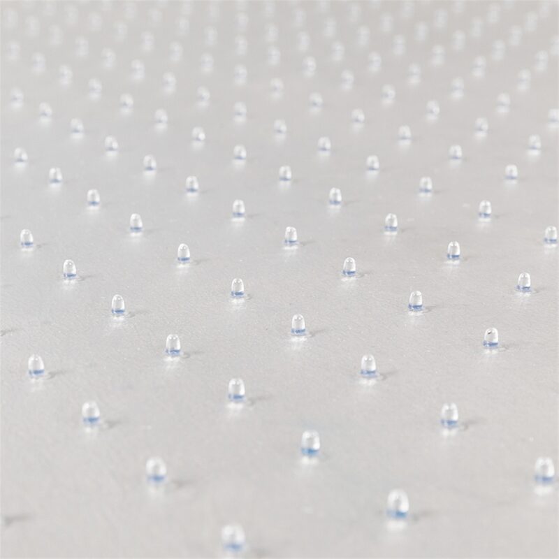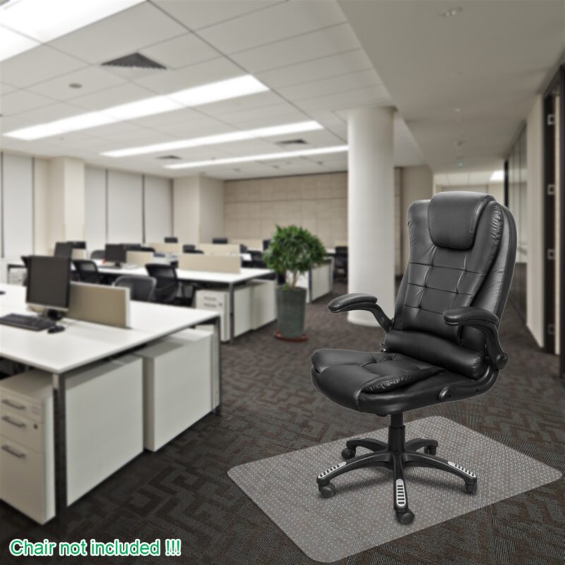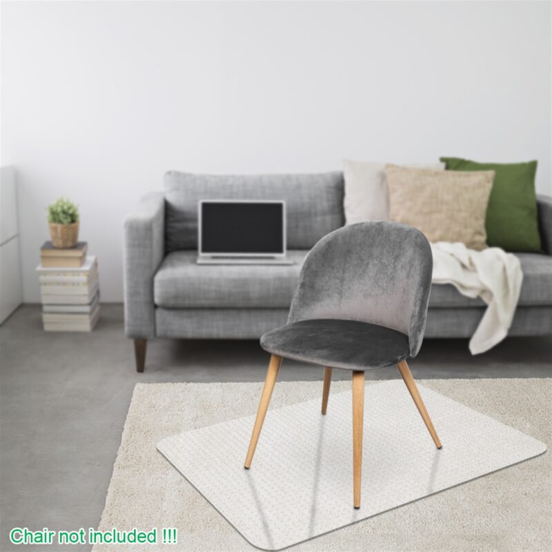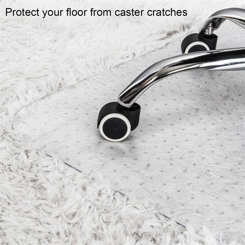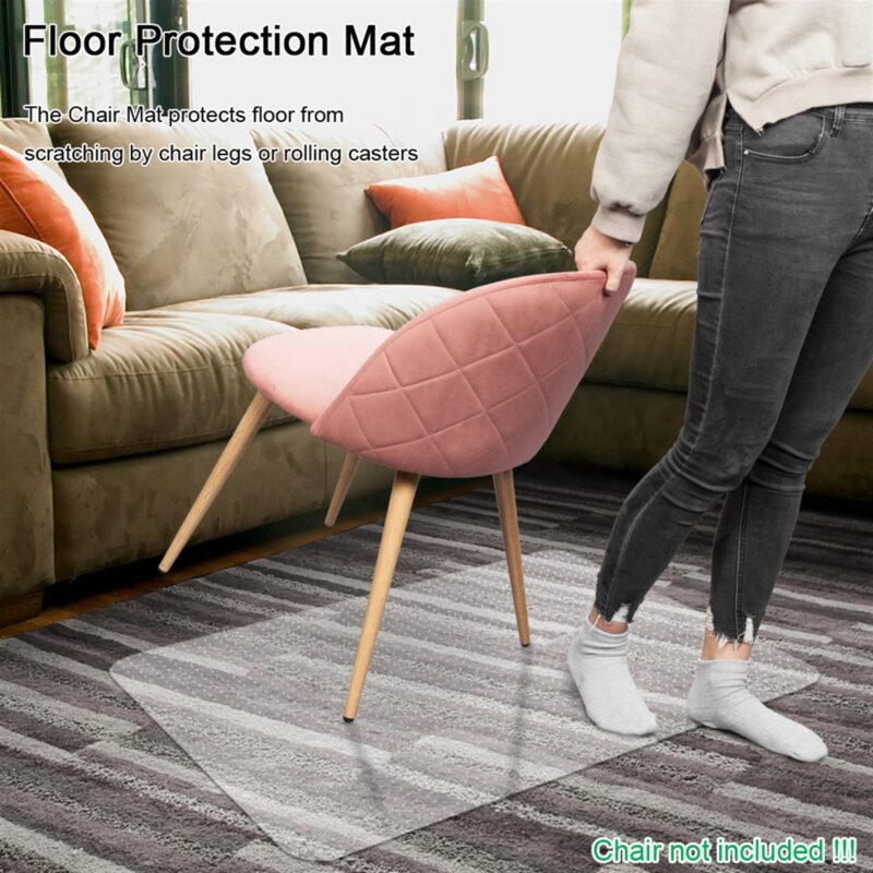 Protect your floors from scratches caused by chair legs with this PVC rectangle floor mat. Designed for hard floors (tiles, concrete) and carpets, its durable PVC material shields against scuffs and scratches. The transparent design complements any home or office decor, while the smooth surface allows chairs to glide easily. One side features a textured plane and the other a nail surface for stability. Note: Not suitable for direct use on wooden floors. After unpacking, if irregular, iron with boiled water and press with heavy objects for 3-5 days to flatten.