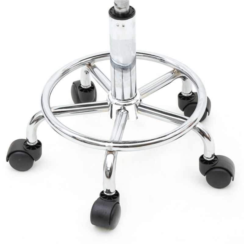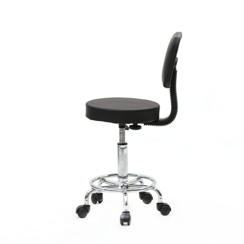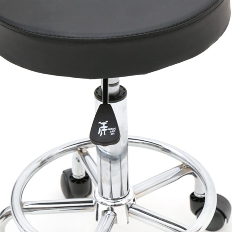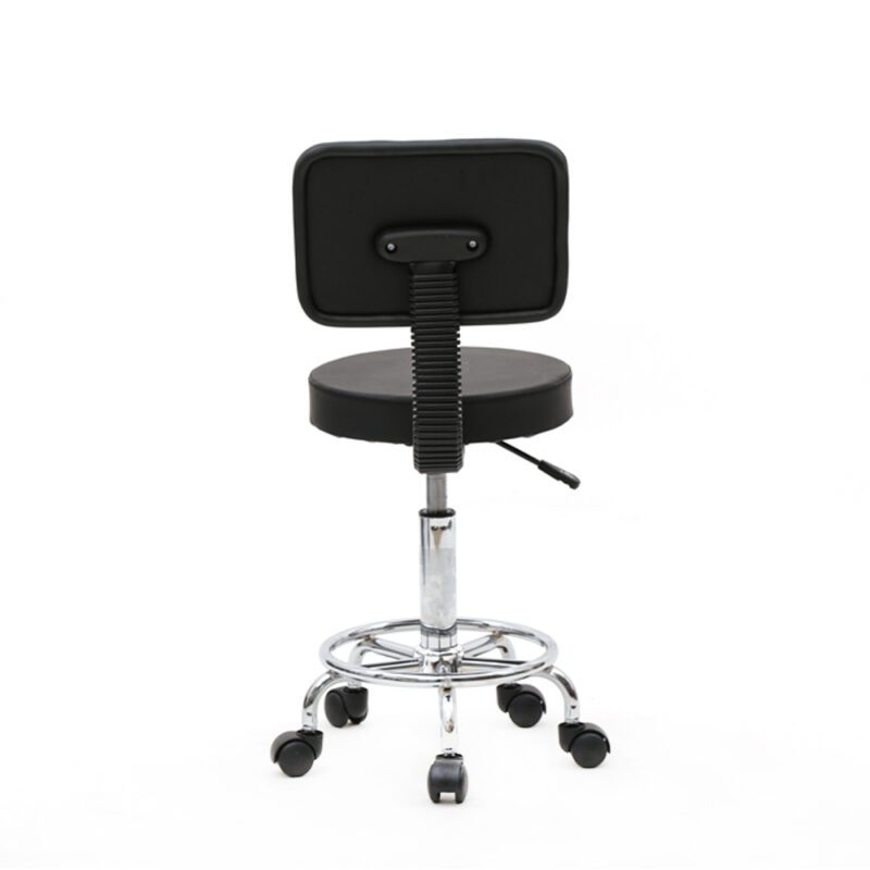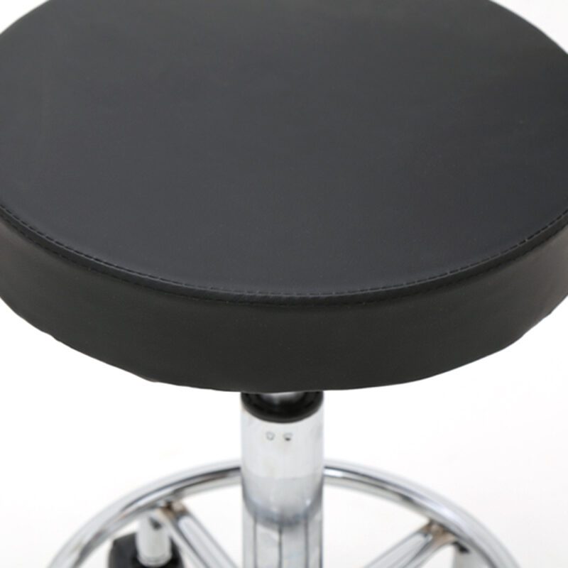 This round-shaped adjustable salon chair features a sturdy backrest for enhanced comfort. Constructed with durable PU leather, supportive sponge cushioning, and chrome-plated iron frame, it ensures safety and longevity. Lightweight design allows easy mobility, while anti-skid base and rust-resistant materials provide stability. Ideal for salons, homes, or offices with 360-degree rotation capability.