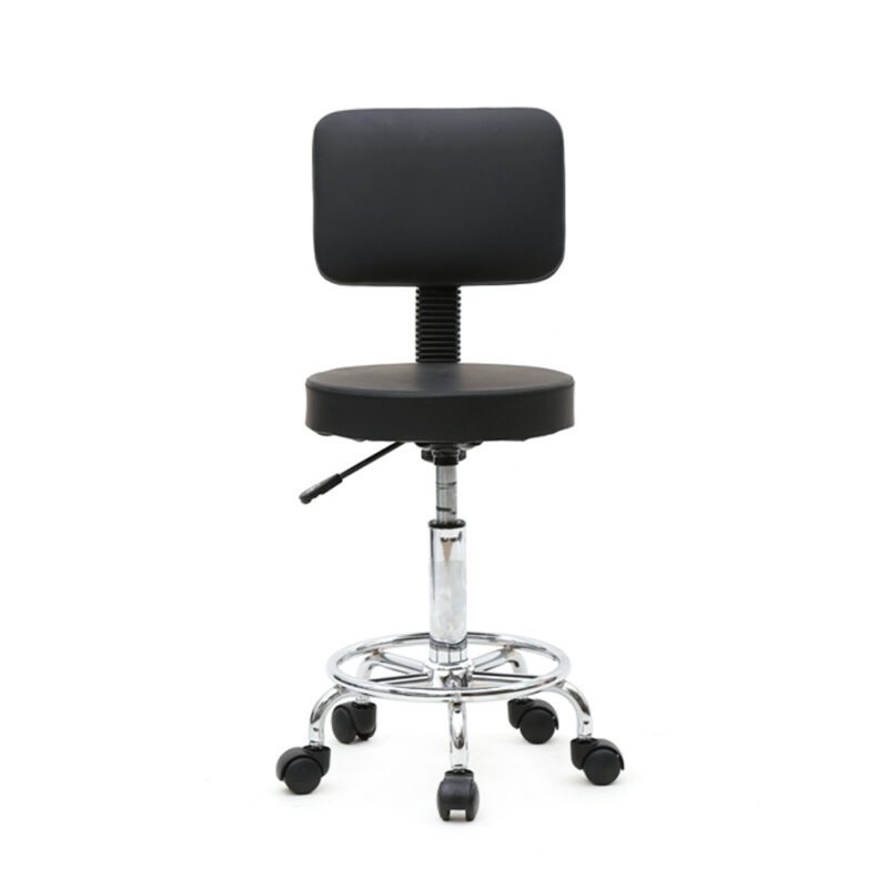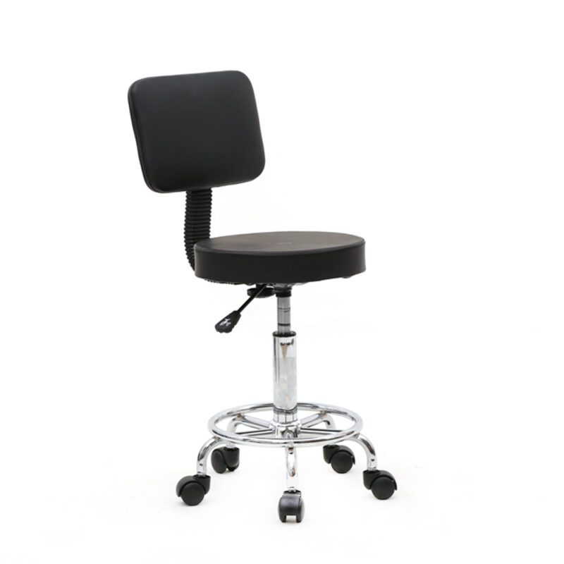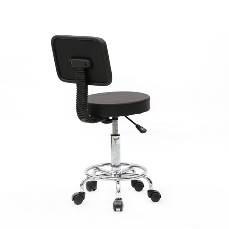 Adjustable Salon Chair with Back, Round Black