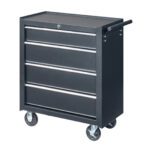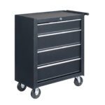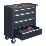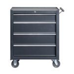 Optimize storage and organization with the Single Base Cabinet 4-Drawer Steel Instrument Cart, designed for laboratories, medical facilities, and workshops. Featuring durable steel construction with a black finish, this cart offers 330-pound load capacity for heavy instruments. Four drawers keep tools and equipment organized and accessible. Combines functionality with professional style.
