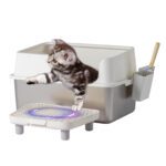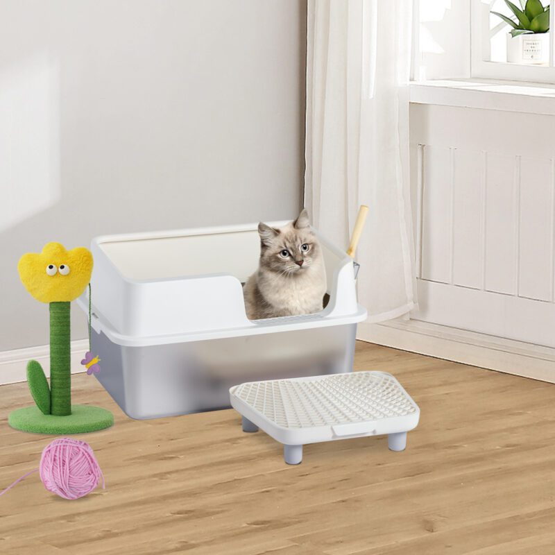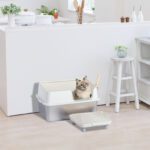 Upgrade your cat’s bathroom with this stainless steel litter box designed for big cats. The extra-large capacity and high sides provide ample space while containing litter. Features include a pedal filter to reduce tracking, odor-resistant stainless steel surface for easy cleaning, and leak-resistant construction. Includes litter box, filter pedal, scoop, and storage box. Dimensions: 24×15.7×13 in (61x40x33 cm).