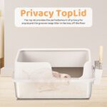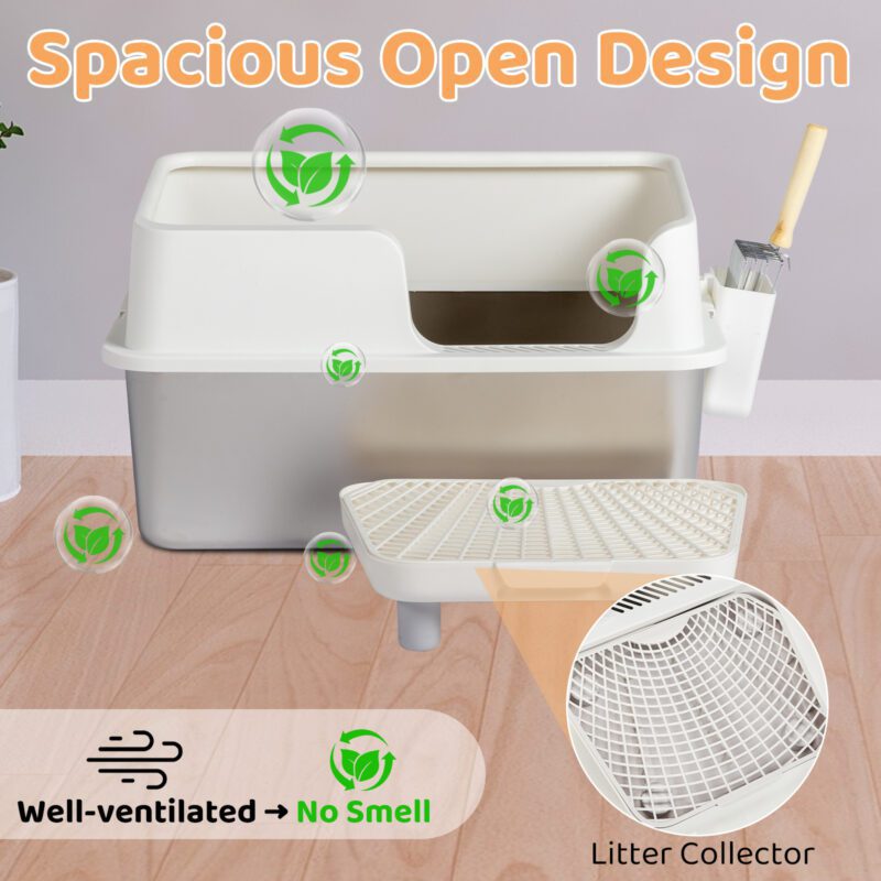 Stainless Steel Extra Large Cat Litter Box with Lid for Big Cats, White