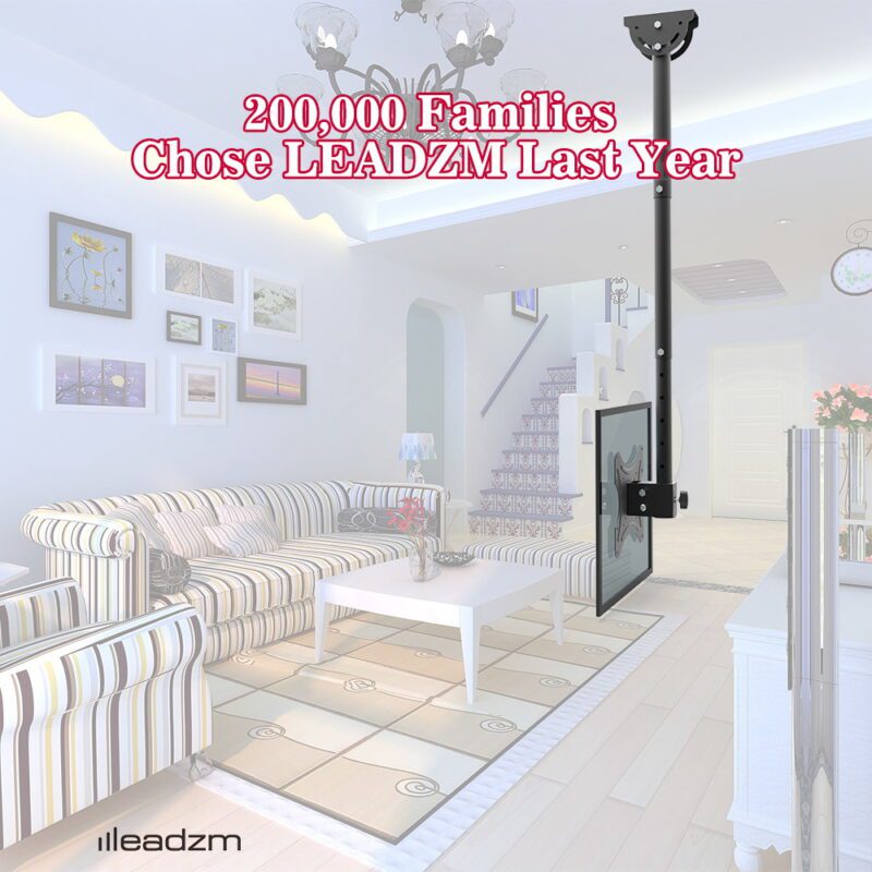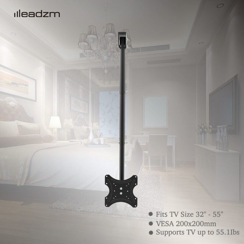 The LEADZM TMC-7004 Ceiling TV Mount securely installs 32 to 55 inch flat screen TVs and monitors to the ceiling. Compatible with most brands, it supports VESA patterns from 75x75mm to 200x200mm. Built with heavy-duty steel, this mount holds up to 25kg (55 lbs). It features tilt and swivel adjustments for optimal viewing angles, making it ideal for commercial and residential spaces like bars, restaurants, fitness centers, offices, and living rooms.