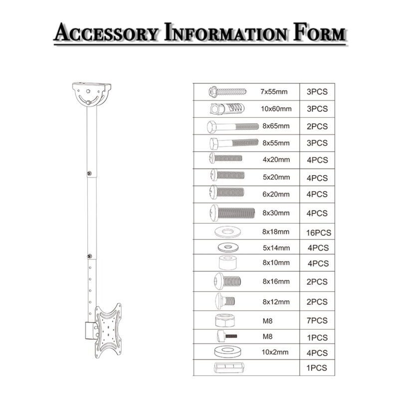 – 1 x Standard Hardware Kit (Note: Screws may not fit all TV models. Purchase a compatible kit separately if needed.)