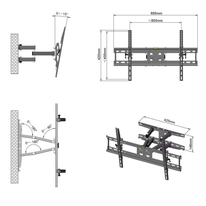 4. Supportable Display Size: 32-70 inches (81.82-177.8 cm)