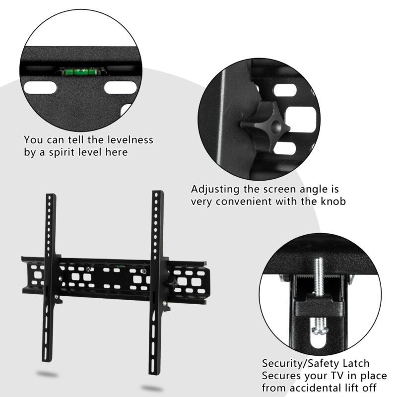Introducing the LEADZM TMW003S TV wall mount for 32-70 inch TVs. This space-saving solution frees up your living area while providing secure mounting with a 50 kg load capacity. Features adjustable tilt (-5° to 20°), built-in spirit level for easy installation, and durable cold-rolled steel construction. Ideal for living rooms, studies, and classrooms.