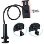 This adjustable gooseneck tablet holder stand provides comfortable viewing or reading in bed. Note: Designed primarily for passive use; frequent touching may cause shaking. Features a 39.4-inch (100cm) flexible aluminum-magnesium alloy arm, 360° rotation adjustment, and thickening clamp base (0-2.36 inches) with non-slip silicone. Compatible with devices from 4.7 to 10.5 inches. Usage tips: 1) Form gooseneck into ‘S’ or circle shape for stability with heavy tablets 2) Adjust position using both hands 3) Avoid over-tightening clamp. Securely mounts on bed frames, nightstands, and desks without scratching surfaces.