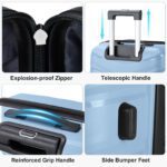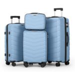 This FCH 4-piece luggage set features a V-stripe design with a sky blue grain pattern. Includes a PP handbag and PP trolley cases in 14in, 20in, 24in, and 28in sizes to accommodate different travel needs. The textured surface enhances durability and grip, while lightweight PP material provides waterproof protection. Features a retractable PP iron pull rod for easy maneuverability.