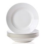 6 White Dinner Plates, 9.5 Inch Round Ceramic Dishes – Dishwasher, Microwave & Oven Safe