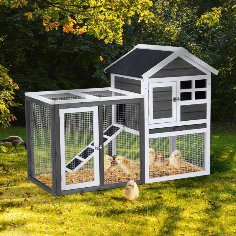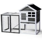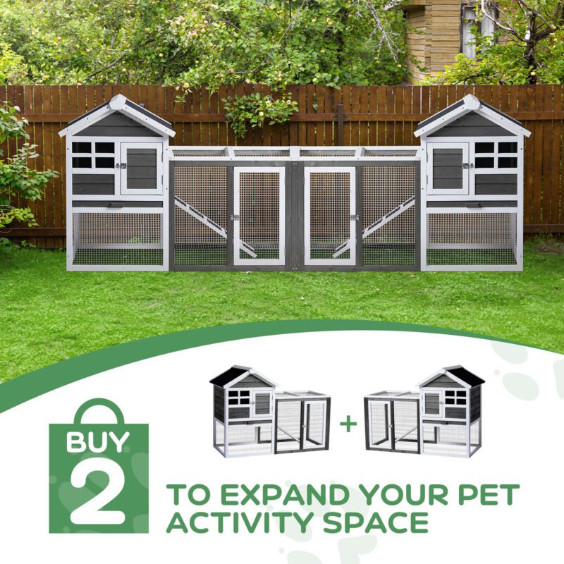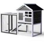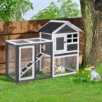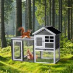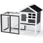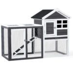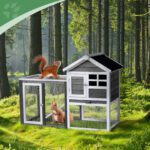 Provide a comfortable home for rabbits, guinea pigs, and other small pets with this wooden hutch. Constructed from solid fir wood and galvanized wire mesh, it offers a safe, non-toxic environment. Features include a removable pull-out tray for easy cleaning, waterproof asphalt roof for weather protection, and secure latch doors. Suitable for both indoor and outdoor use with simple assembly included.