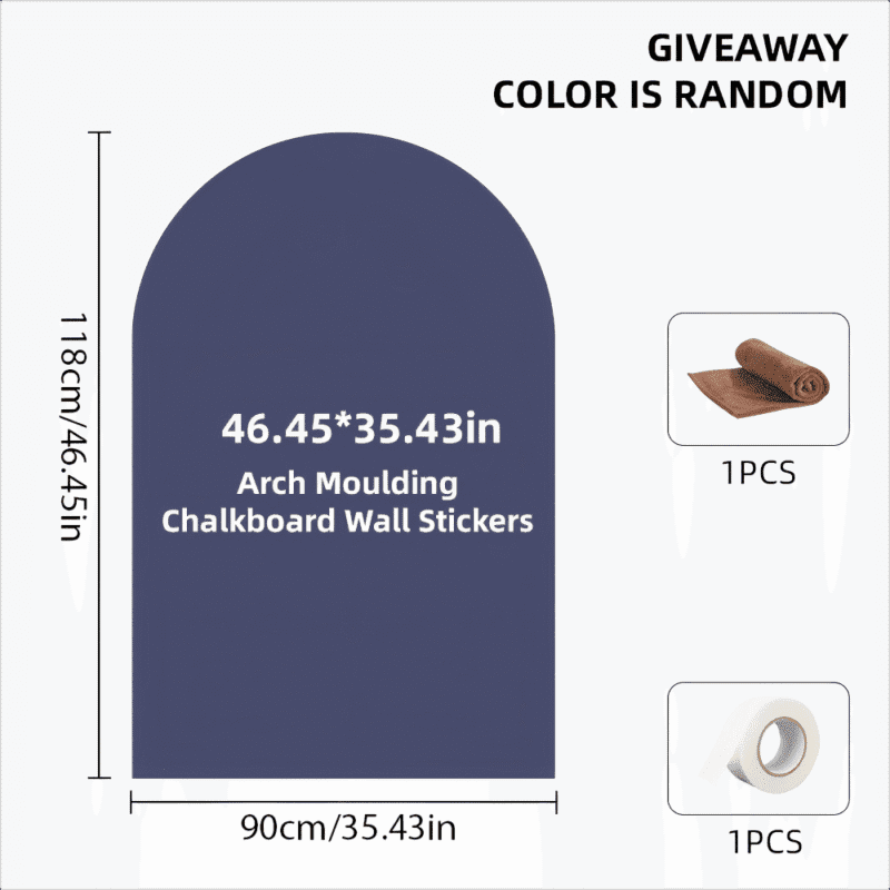 Transform your space with this arch-shaped blackboard wall sticker (118x90cm). Made of flexible PET material, it features a magnetic writable surface for doodles, messages, and displaying notes. Easy to install with removable adhesive backing—simply apply to smooth surfaces without residue. Ideal for homes, offices, or classrooms as a functional memo board or decorative accent. Includes: 1 blackboard, 1 cleaning cloth, and 5 meters of removable adhesive.